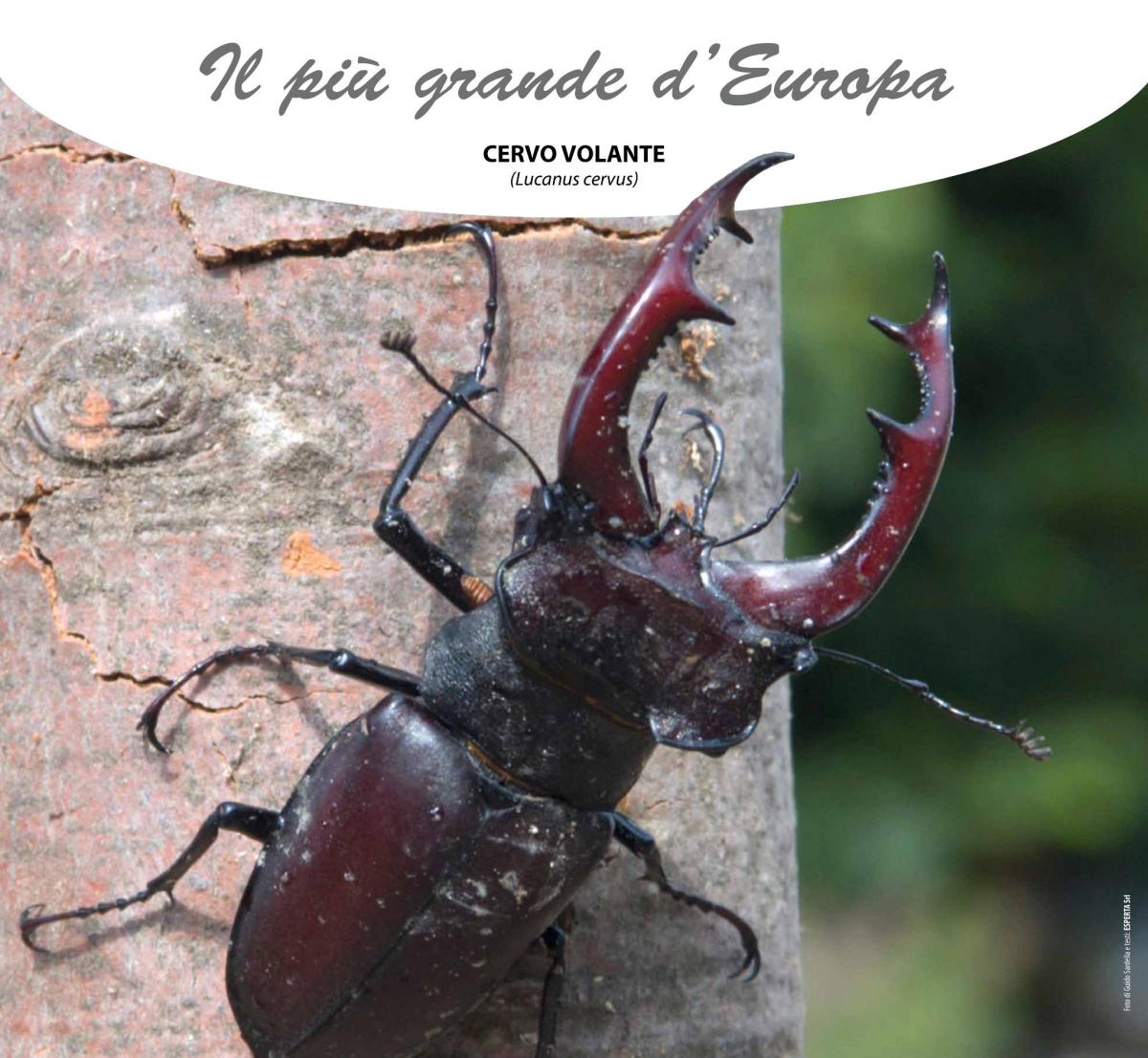 Un ronzio roboante... Un volo pesante al tramonto… Riflessi di luce sul corpo scuro… Ed eccolo là l’insetto più grande d’Europa… Poggiato sul tronco di una quercia un giovane maschio mostra al mondo le sue mandibole grandi e possenti… ma non spaventarti… È il Cervo volante, uno degli abitanti più affascinanti dei boschi attorno a noi. Nella sua forma larvale ha trascorso diversi anni tra querce e castagni, nutrendosi di legno morto e contribuendo così al rinnovamento del bosco che lo ospita. Come i cervi utilizza le sue grandi mandibole a mo’ di corna per spingere gli avversari giù dai rami e assicurarsi così l’attenzione delle femmine, più piccole e meno appariscenti. Altrove il Cervo volante è sempre più raro, perché gli antichi boschi si sono ridotti e chi li gestisce spesso rimuove ceppaie e legno morto o marcescente, nursery accogliente per lo sviluppo delle larve. Se una sera d’estate senti un ronzio profondo e vedi una sagoma imponente attraversare l’aria… salutalo: è il vero “signore del bosco”!